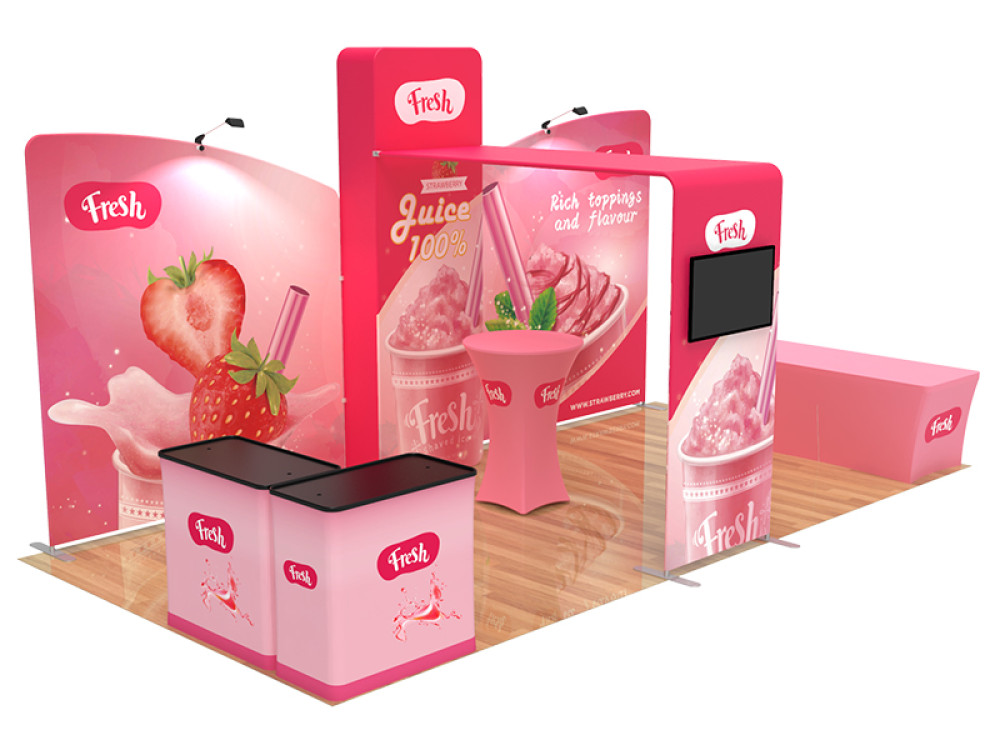 - Designed for 10′ x 20′ tradeshow stalls