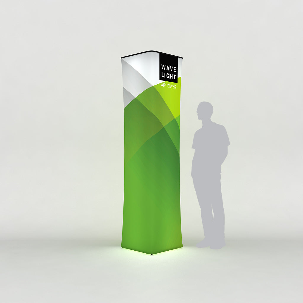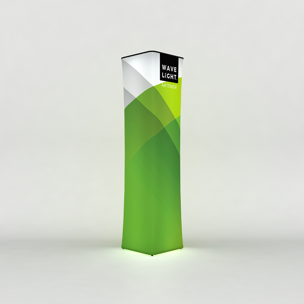 The all-new WaveLight® Air Backlit Inflatable Square Tower. Experience a 360° backlit marketing surface that lights up a room. Go from flat packed to fully inflated in under 60 seconds. The WaveLight® Air Inflatable Backlit Square Tower has an inner core thats durable, stable and strong enough to sit on without collapsing. A self-locking quick-release air valve makes it easy to inflate without losing air and just as easy to deflate with the push of a button.